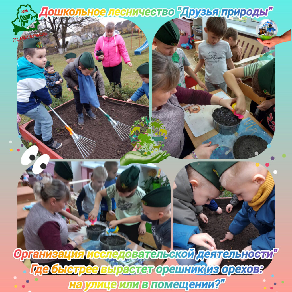 Организация исследовательской деятельности” Где быстрее вырастет орешник из орехов: на улице или в помещении?” в рамках реализации педагогического проекта (дошкольное лесничество “Друзья природы”, руководитель Минкевич Н. В. )
