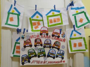 Было проведено спортивное мероприятие “Наши папы самые, самые!”, оформлена выставка рисунков, фотографий “Мой папа”