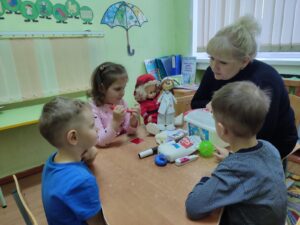 В дошкольном учреждении с 17.04.2023 по 21.04.2023 проходят мероприятия в рамках XII педагогического марафона «Педагог-профессия мирная и созидательная». Воспитателями дошкольного образования уделено внимание вопросам организации развивающей предметно-пространственной среды для реализации трудового воспитания дошкольников, создания адаптивного образовательного пространства для развития трудовых навыков у детей с особенностями психофизического развития; формированию у воспитанников первоначального интереса к профессиям взрослых и понимания значимости результатов их труда для семьи и страны; содействию овладению детьми дошкольного возраста элементарными трудовыми умениями.