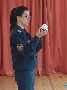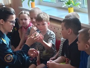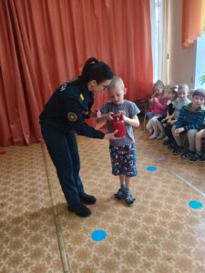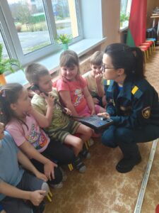 В рамках республиканской акции “Безопасный Новый год” прошла встреча с сотрудником Смолевичского РОЧС Лещинским Е.С., на которой детям напомнили о правилах пожарной безопасности, первых действиях детей при пожаре, были показаны видеоролики на тему пожарной безопасности.