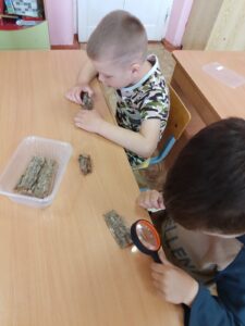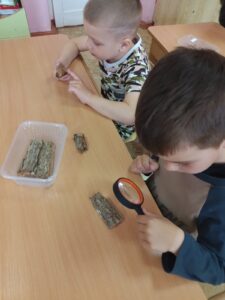 В мини-музее леса ребята знакомятся с корой разных деревьев,